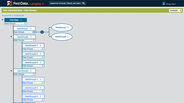 First Data Financial Services Back Office Replatforming First Data handles 45% of all US credit and debit transactions. They had many back office applications that had evolved independently and they wanted to allow their customers to have direct access to many of these services. I was the lead UX Designer for the consulting team that was creating a portal for access to these applications and designed the core applications that would provide the administrative functionality and set the standards to which the applications would evolve. ![]() Portal NavigationA key requirement was that the users could switch quickly between a pluggable set of applications. ![]() Nested Attribute EditorObjects (User Groups here) were organized in a hierarchy and the attributes of these objects were nested and interrelated. The solution was “Basecamp” style cards that allowed pivoting at every level of the hierarchy. The cards could be fanned out to view the path. | |||||