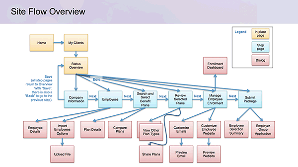 Humana Self-service Healthcare Benefits Selection Experience for Small Business I was part of a consulting team working for the Group Insurance division of Humana to transform the existing paper-based signup/on-boarding process which took weeks to complete. I had a dual role as the UX Research Lead across the project and UX Designer for one of the three tracks. As Research Lead I coordinated weekly user research for 7 three-week sprints across three tracks: Employers, Employees, and Brokers. User interviews were conducted using progressively higher fidelity MVPs, from wireframes to HTML prototypes. As UX Designer I designed a small group enrollment experience for employers and their employees and conducted the weekly user interviews using the evolving prototype. ![]() PersonasWith three user types (Employers, Employees, and Brokers) is was critical to build and understand all the personas to ensure the solution would work across the many usage scenarios. ![]() Screen FlowScreen flow diagrams helped identify the page types and reusable UX patterns across tracks and unify the user experience as well as optimize implementation. | |||||